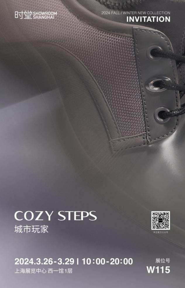 COZY STEPS 24FW将以“城市玩家”为主题,在3月26日至29日参与时堂、MODE两个展会。本次展示的24FW鞋款是从织物艺术装置中及柔软毛绒坐垫中提取的灵感,主推产品经典再升级,将传统的经典配方加入烟霞配色和趣味结绳设计,将玩转城市的生活态度展现的淋漓尽致。在展会里,您可以尽情享受城市生活的惬意和舒适。我们为繁忙的都市人在城市里提供一处能放松自己的地方,让都市人能真正玩转城市每一面。在此邀请您参与本次两场展会,希望借此让您一同体验玩转城市的感受。