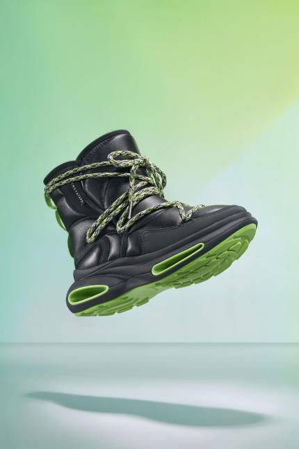 COZY STEPS 24FW贝果马丁靴以及贝果鞋将呈现在大众视野,在不改变产品舒适性的同时,使产品更具有乐趣,更是体现了做城市玩家的态度。纺织渐变的鞋面配以后跟皮环处3M反光logo,炫彩多元的设计展示多元的态度,PU包膜大底搭配可拆卸足弓鞋垫把舒适作为不变的追求。经典马丁靴与独创贝果鞋的结合又带有独特的品牌特色,与本次展会品牌主题不谋而合。