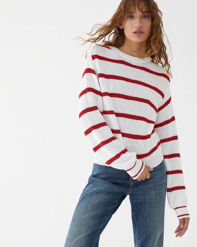 如果你不喜欢细条纹,也可以尝试宽条纹的单品,纹理分布得更加散漫,展现出大气的感觉。iBLUES 2024 春夏系列将条纹简约化,使其成为焦点,展现出动感和自信。条纹衫的魅力在于无需刻意搭配,它本身就有足够的气场,搭配蓝色牛仔裤和绑带单鞋刚刚好衬托它的随意。