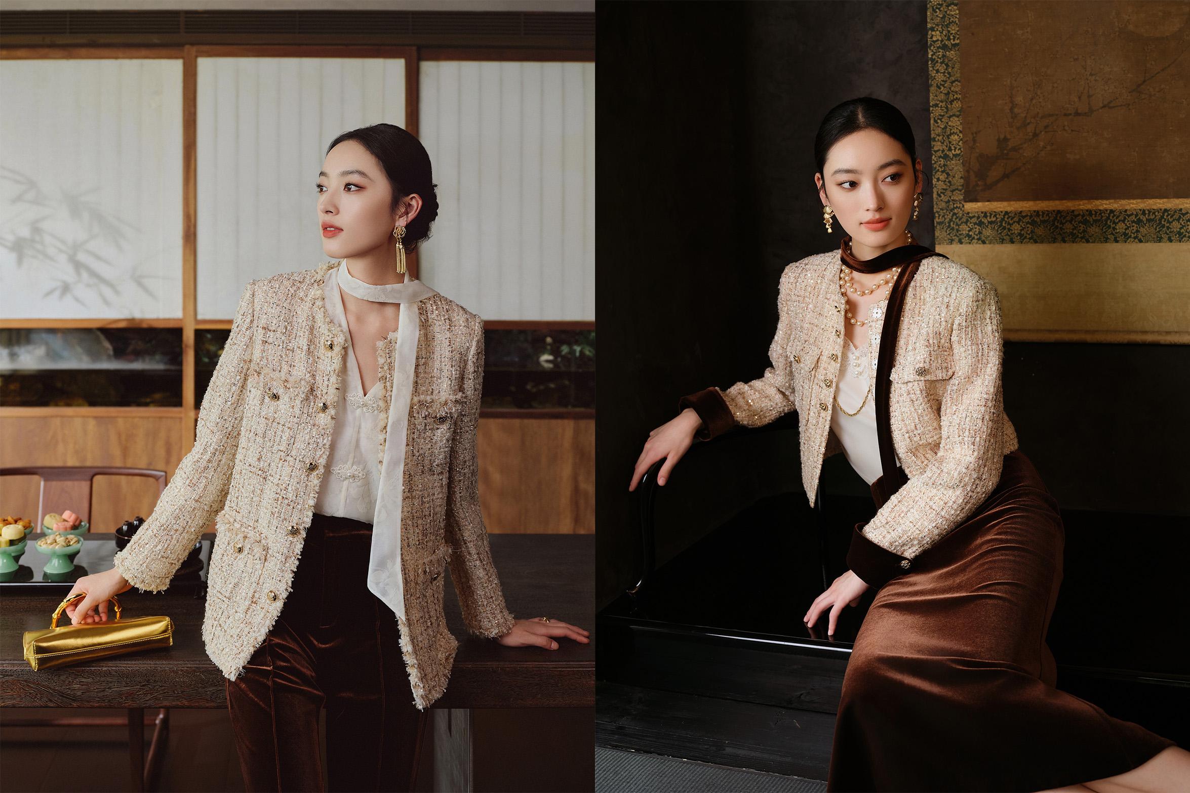 BADINA芭蒂娜2024秋季「三生有幸」系列香风外套,以东方美学解构静奢风格。经典小香风被古典雅致的浅玉色重构,呈现令人耳目一新的面貌。