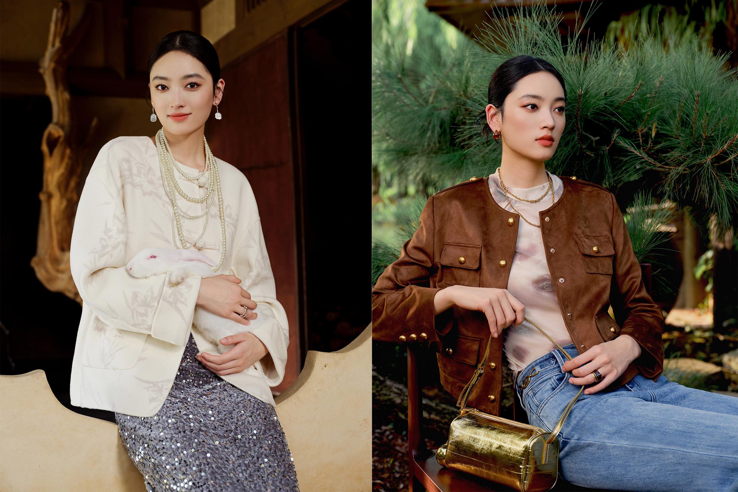 「三生有幸」系列麂皮外套、丝绒半裙,则以复古感十足的美拉德色系点染「她」的坚韧与从容。软糯面料的细腻触感,如金风轻抚肌肤,慰藉每一个为梦奋斗的日夜。