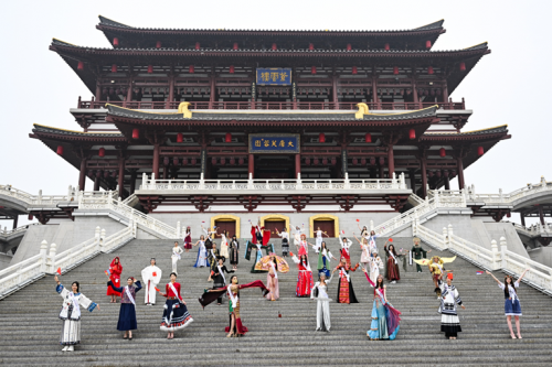 今早,西安的天空飘着小雨,大唐芙蓉园里仿佛江南水乡般烟雾氤氲。这些独特面孔的出现,瞬间引来游人的目光。她们是2024“丝路环球旅游小姐世界总决赛”的选手,即将由她们开启的,是一场名为“丝路明珠·彩虹张掖”的路演活动。