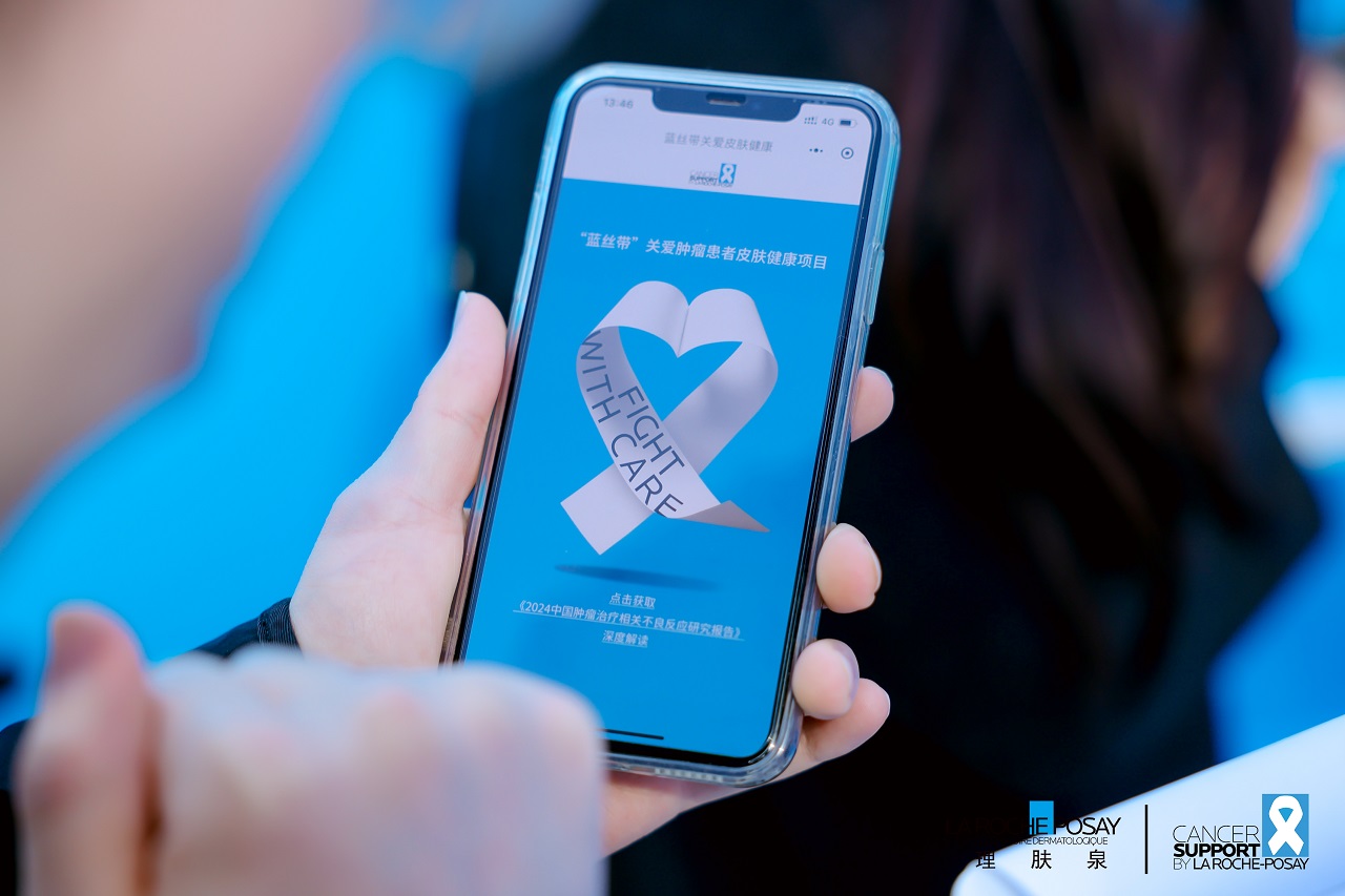 除此之外,展台还展示了“蓝丝带关爱皮肤健康小程序”,该小程序能帮助患者深入了解常见的皮肤不良反应,并给出针对性科学护肤、以及多学科(MDT)问诊建议,也为专家人员的科学护理决策提供了重要辅助参考,旨在为用户提供值得信赖的科学系统皮肤护理指导与康复领域相关科普。此次在CDA 2024的展出,意在携手与会专家一同参与肿瘤患者皮肤不良反应的关爱行动,守护肿瘤患者的皮肤健康。