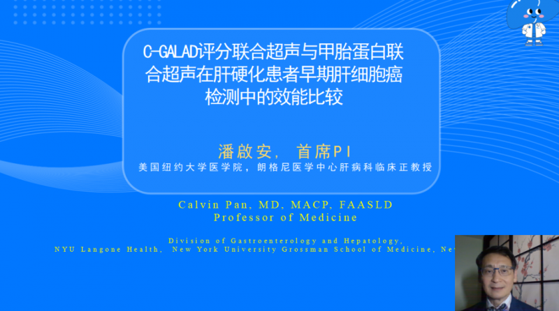 项目核心专家、广州医科大学附属广州市第八人民医院和美国纽约大学医学院朗格尼医学中心潘啟安教授就“C-GALAD评分联合超声与甲胎蛋白联合超声在肝硬化患者早期肝细胞癌检测中的效能比较”项目进行介绍。