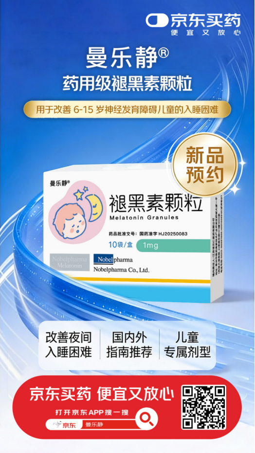 儿童睡眠用药曼乐静®褪黑素颗粒在京东健康开启预约